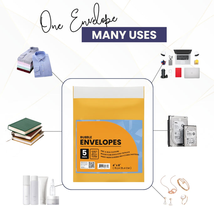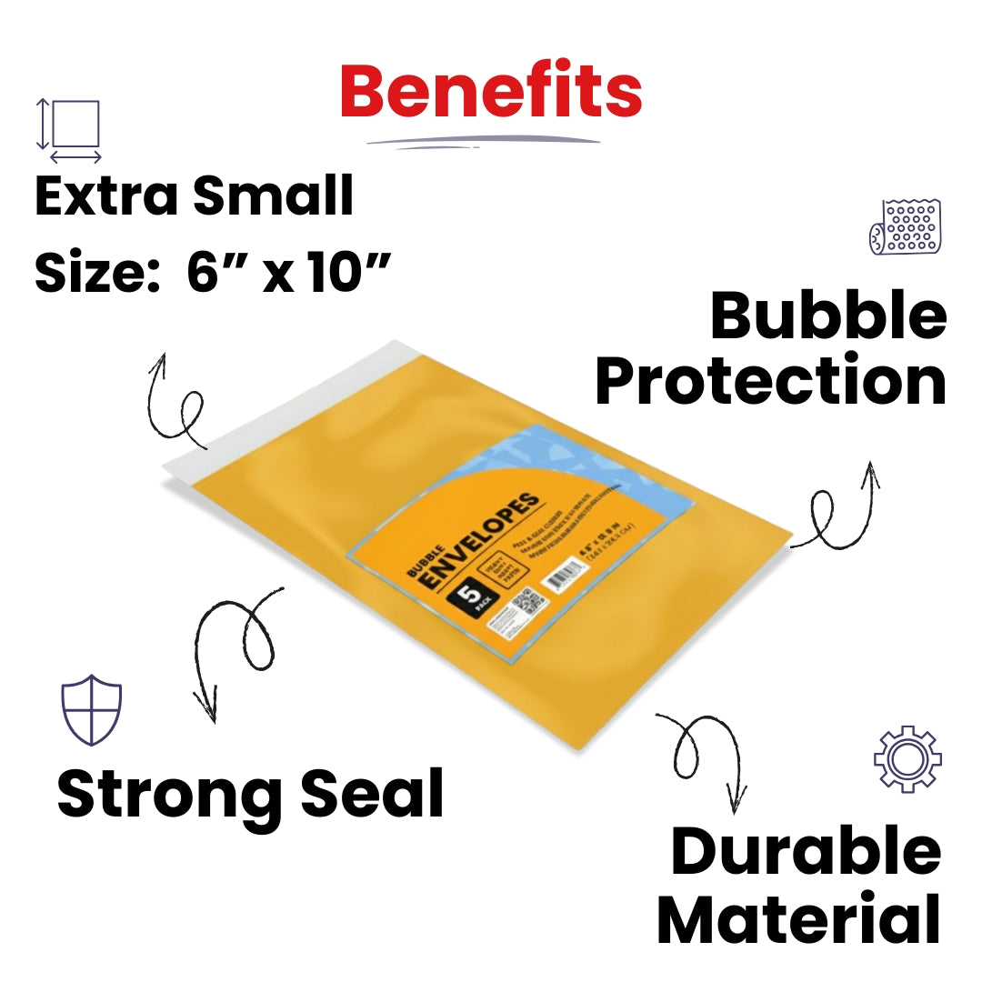 - Includes 5 bubble envelopes per pack; total 48 packs per case.