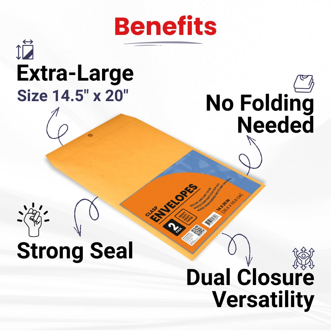 - The envelopes measure 14 X 20 inches, providing ample space for documents.