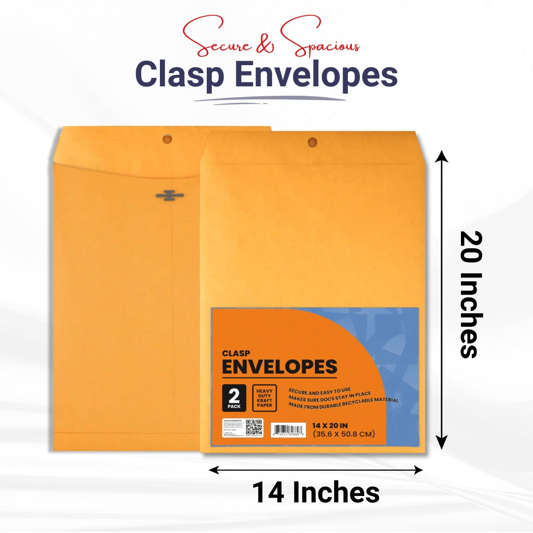Our Kraft Clasp Envelopes are designed to provide you with the perfect combination of strength and style. Made from high-quality kraft paper, these envelopes are not only durable but also offer a natural, rustic look that is perfect for both personal and professional use. With a generous size of 14 X 20 inches, these envelopes are ideal for mailing large documents, artwork, or promotional materials without the worry of bending or damaging your contents. The secure clasp closure ensures that your items remain safe and protected during transit, giving you peace of mind. Whether you're a business owner looking to send important documents or an artist wanting to showcase your work, our Kraft Clasp Envelopes are a versatile choice that meets all your mailing needs. Experience the perfect blend of functionality and aesthetics with these high-quality envelopes today!