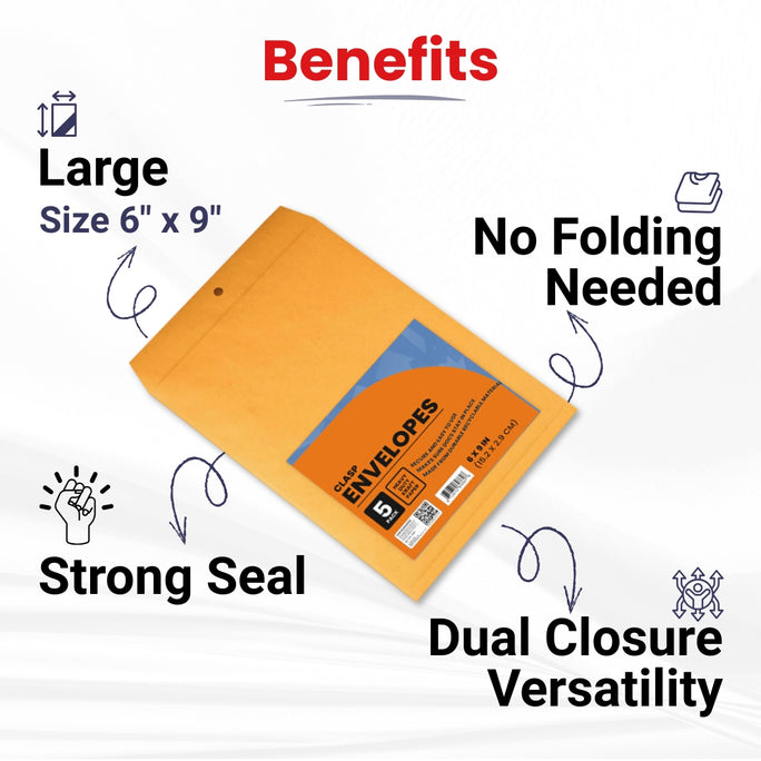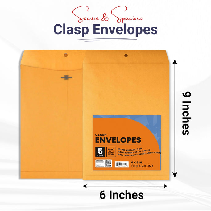 The Kraft Clasp Envelopes come in a convenient 5-count package.
