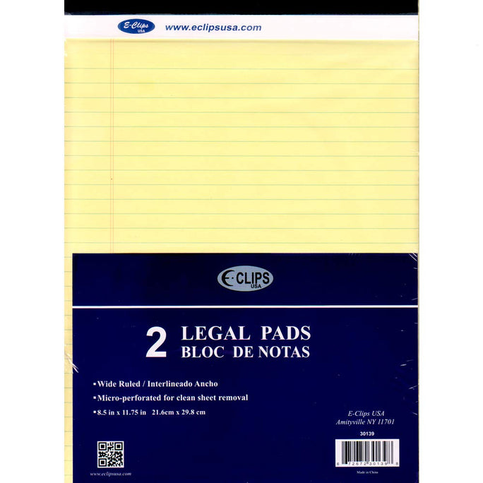 Legal Pad, 8.5"x 11", 2pk, 50 sheets each, Canary, Case Pack of 30, Ideal for Bulk Buyers.. It is micro-perforated for clean sheet removal. The quality of sheet in the legal pad is best. It is great for students at school, college and university and employees at office to write important points in it. It is easy to use , handy in size and is travel friendly too.- The size of legal pad is 8.5" x 11.75"