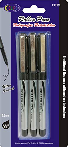 Roller pens, 3 Pk., black Ink, Case Pack of 24, Ideal for Bulk buyers. The pens have an ultra smooth 0.5mm tip. It has traditional elegance with modern technology. It is great for everyday use and can be given out as gifts to your friends, colleagues and co-workers.