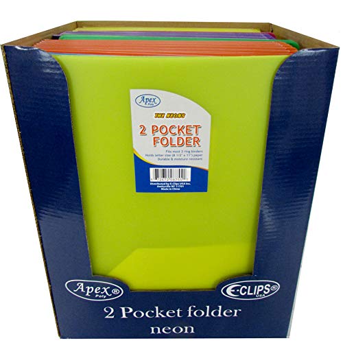 AUKSales 2 Pocket Poly Folder, 3 Holes, Neon, Asst. Colors, in Display, Case Pack of 48, Ideal for Bulk Buyers