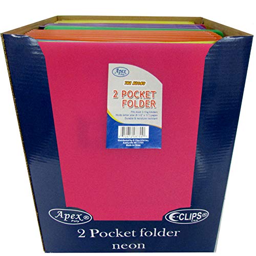 2 Pocket Poly Folder, Snap-In, Neon, Asst. Colors, in Display, Case Pack of 60, Ideal for Bulk Buyers. These folder are useful for students, people at work or home to keep their documents safe in one place. It can hold letter size paper and has 3 holes that fits in most 3 ring binder. It is handy in size and is travel friendly too.