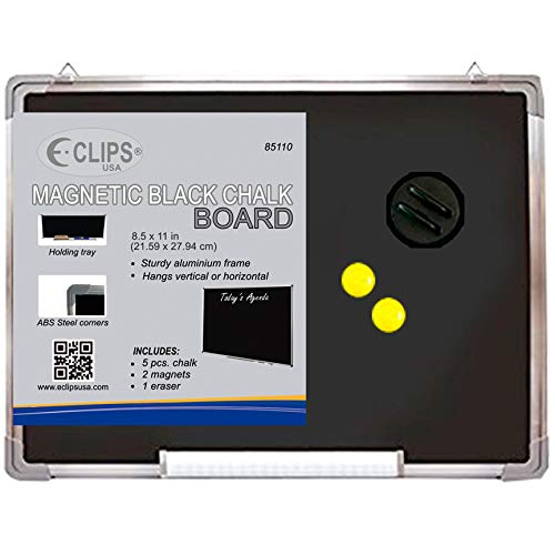 - The size of black magnetic board is 8.5" x 11". It includes 5 chalk marker, 2 magnets and 1 eraser