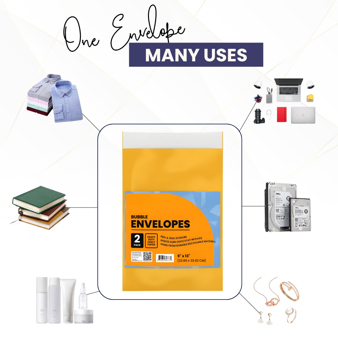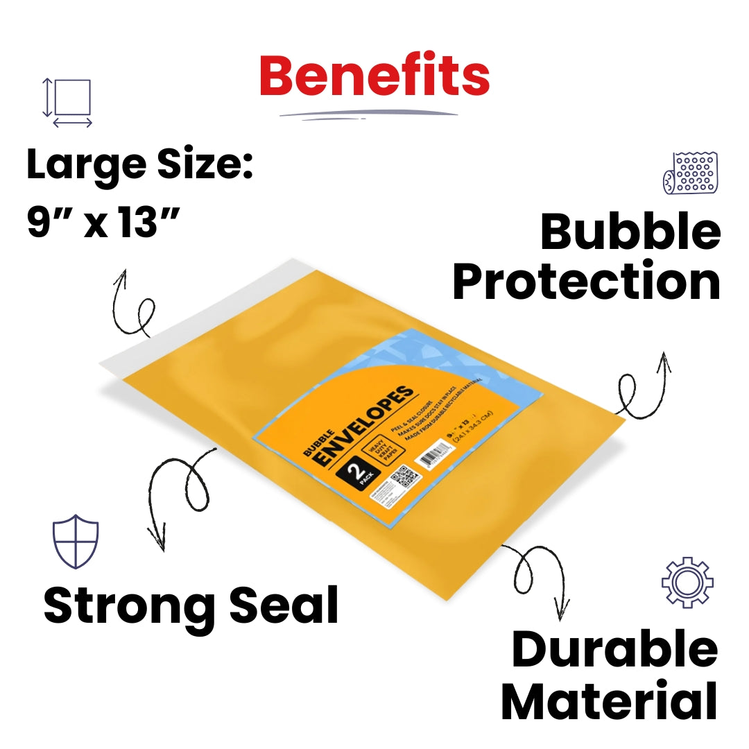 Bubble Envelopes 9" X 13", 2-count, Pack of 48 | Journal Office Supplies, Ideal for Bulk Buyers
